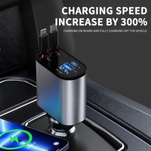 Fast Charger Chargeur de voiture 120W Avec Cable Intégré rétractable Lightning + Type-C
